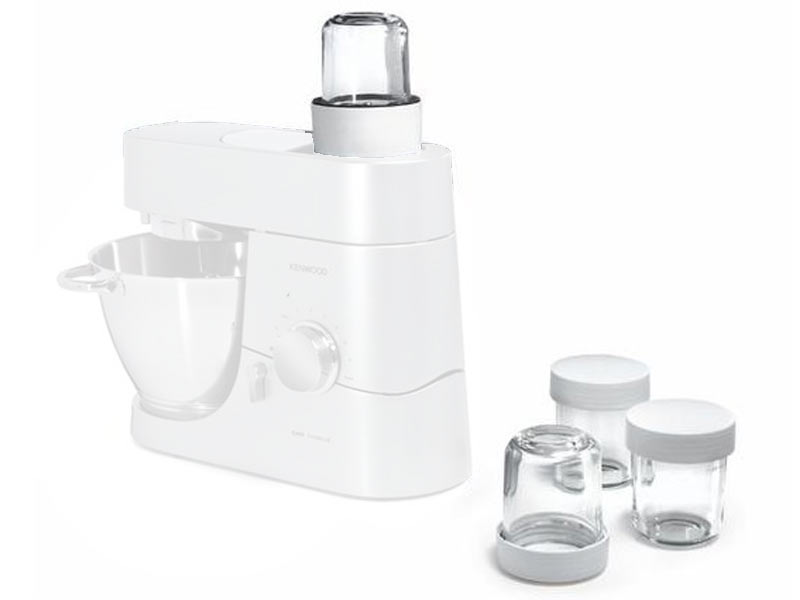 A great little accessory for chopping, milling, grinding and blending small portions of food into glass jars. Great for baby foods, spices, coffee, marinades, dressings, purées, herbs and nuts. And it comes complete with three glass jars for handy storage. The smaller container means you can chop much more quickly and finely than you can with a larger mill attachment. The flat blade is great for coffee beans.